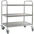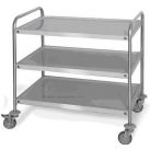 Тележка изготовлена из нержавеющей стали, з полки с округленными краями, расстояние между которыми 267 мм, отделаны снизу шумопоглощающим материалом, имеются 4 поворотных колеса, два из которых оборудованы тормозом. Выполнена в приятном современном дизайне.