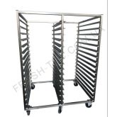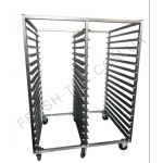 Стеллажи кондитерский производятся под типовые размеры противней - 650х530мм, 600х660мм, 600х800мм, 400х600мм. Количество полок-ярусов – от 6 до 25. Габаритные размеры, число направляющих, вид колес уточняются индивидуально.