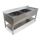 Столы производственные с моечной ванной используются в кафе, ресторанах и цехах. Изготавливаются, как полностью из нержавеющей стали, так и в комбинированном исполнении «эконом» (каркас и полка – сталь, окрашенная порошковым напылением, столешница из нержавеющей стали AISI 304/AISI 430), в зависимости от области применения.