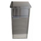 Урна представляет собой высокую тумбу размерами 60х60х112 см. В верхней части устроена удобная маятниковая дверь для выброса мусора. В нижней части тумбы есть значительное место для размещения бака для сбора отходов, который закрывается дверцей с магнитным удерживателем. На бак одевается прочный пластиковый пакет, размер которого соответствует литражу бака.